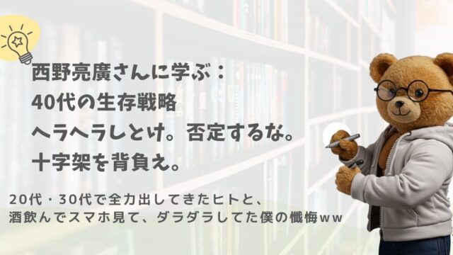 【西野亮廣さんに学ぶ】40代の生存戦略:ヘラヘラしとけ。否定するな。十字架を背負え。