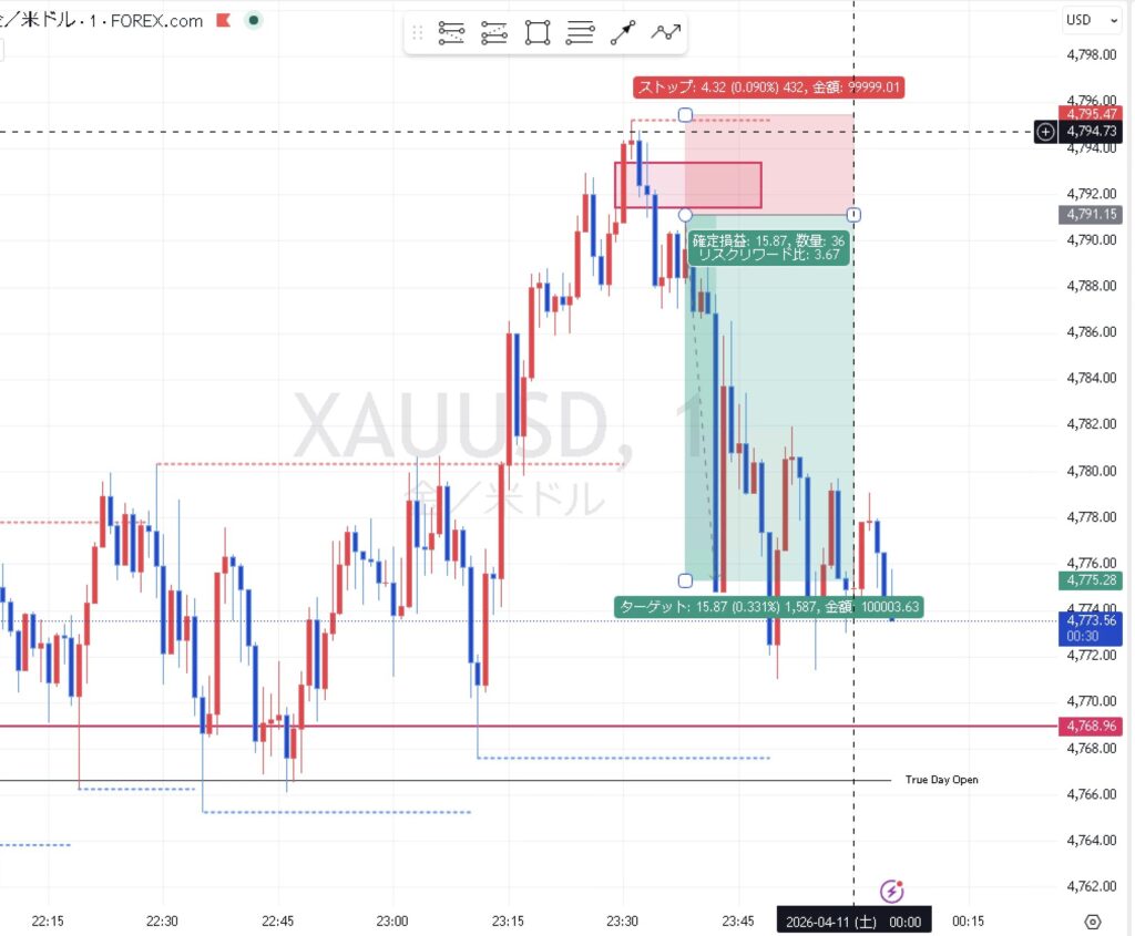 RR3.67を獲れたIFVGショートの全手順【XAUUSD 2026.4.11】